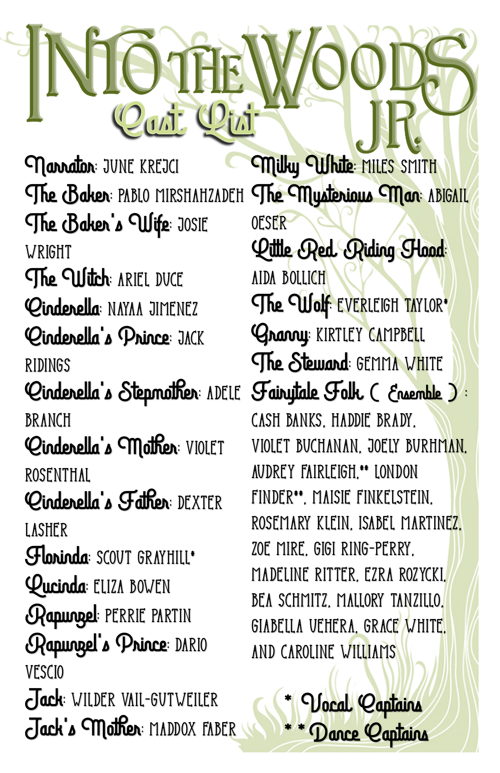 • Into the Woods Jr Cast List (Audition Results)