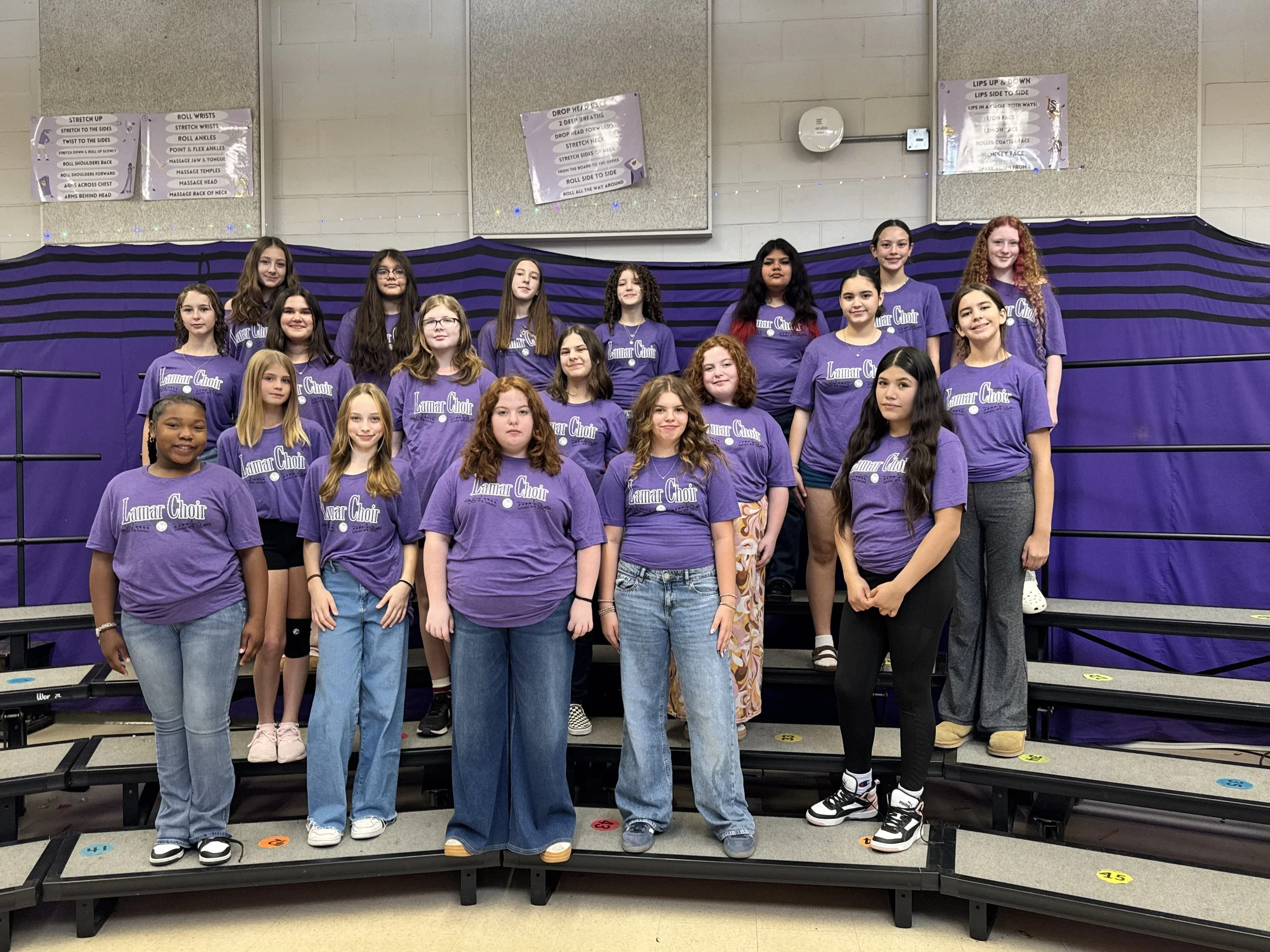 Scottie Singers consists of a select group of 7th and 8th-grade girls selected through an audition process the previous year, plus a small number of 6th-grade choir majors who auditioned. This choir requires morning sectionals and will focus on advanced repertoire, vocal, and choral technique while continuing the curriculum from the Doggie Dames Choir. This ensemble's recent achievements include receiving superior ratings in Concert and Sight Reading at the UIL MS Concert and Sight-Reading Contest in 2024 and 2025, which earned them a Sweepstakes trophy. The choir performs in at least three scheduled concerts, including the All Choirs Winter Concert, UIL MS Concert & Sight Reading, & Spring Pop Show. This group also participates in other gigs offered exclusively to the ensemble throughout the year, such as Holiday caroling at community events. All Scottie Singers are required to participate in the TMEA All-Region Choir Auditions.